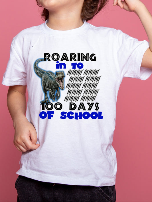 Roaring in to 100 Days of School - Blue Jurassic World PNG Digital Download - Sublimation Print PNG