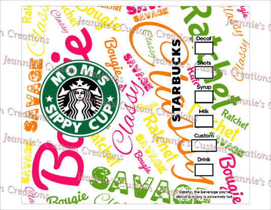 Bougie Savage Rachet Classy - Mom's Sippy Cup Starbucks 20oz Sublimation Tumbler Wrap PNG, Straight and Tapered, Digital Download