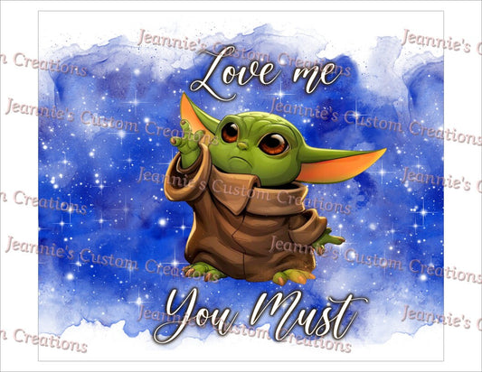 Grogu- Love me you Must Baby Yoda 20oz Sublimation Wrap PNG, Straight and Tapered, Digital Download